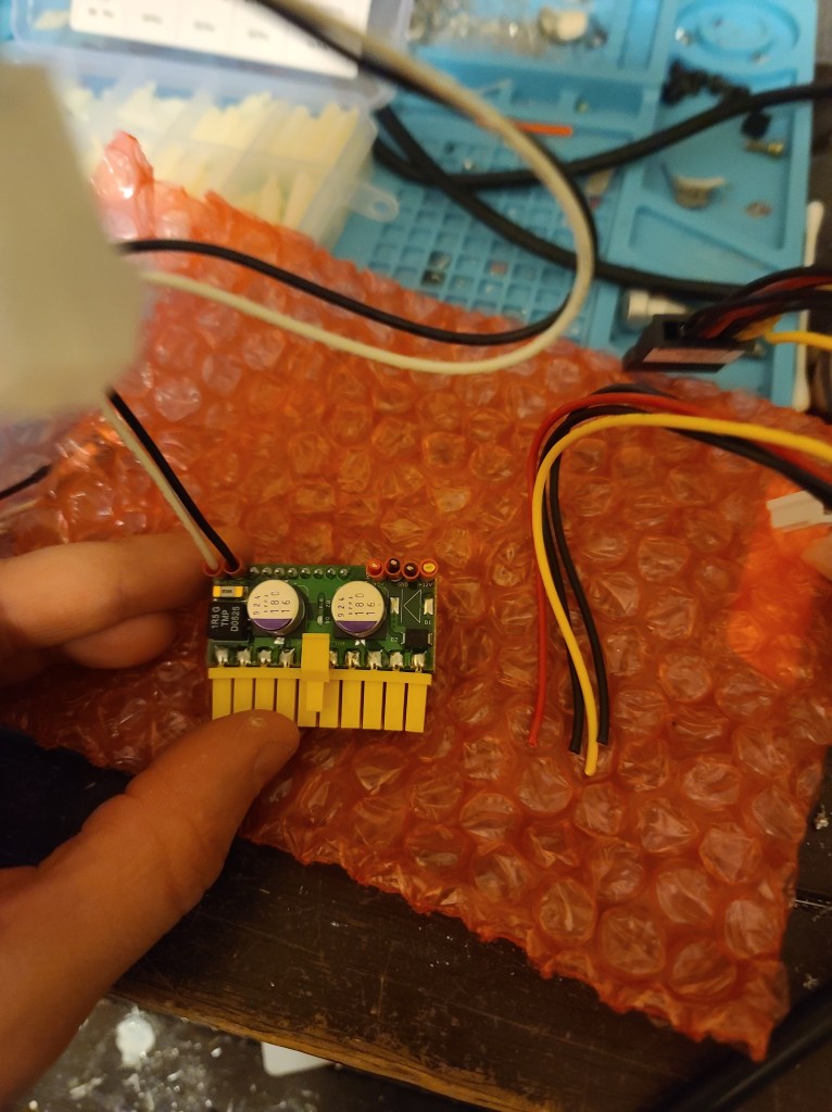 Get your Pico PSU and cut some wires. Some are not needed. I’m using ITX Pico PSU purchased from this website. I strongly advise using the authentic one and not the fake copy. picoPSU-120 12V DC-DC ATX power supply (mini-box.com)