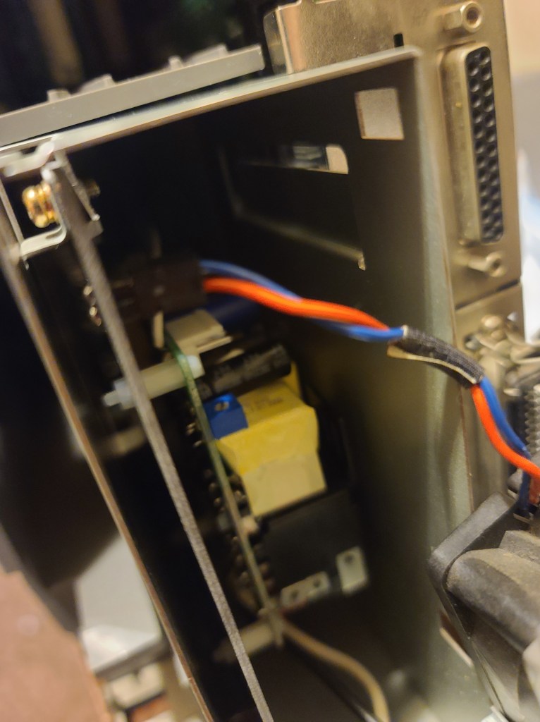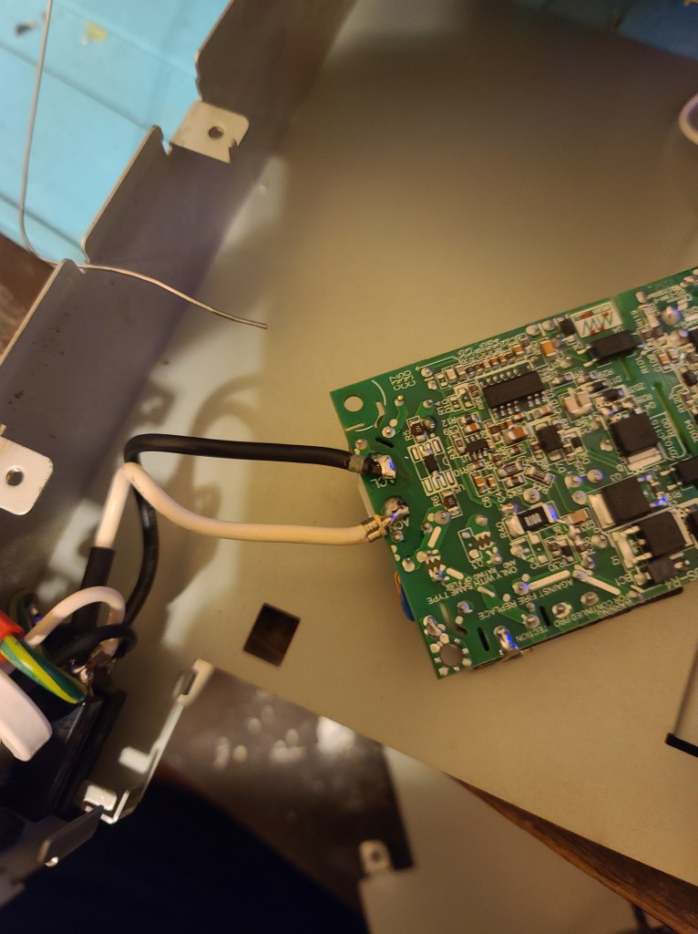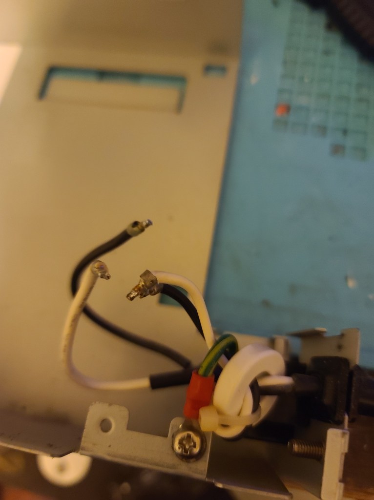 Open your dead FM Towns Power Supply. Desolder the two black and two white wires. You will be left with what you see in the photo.
