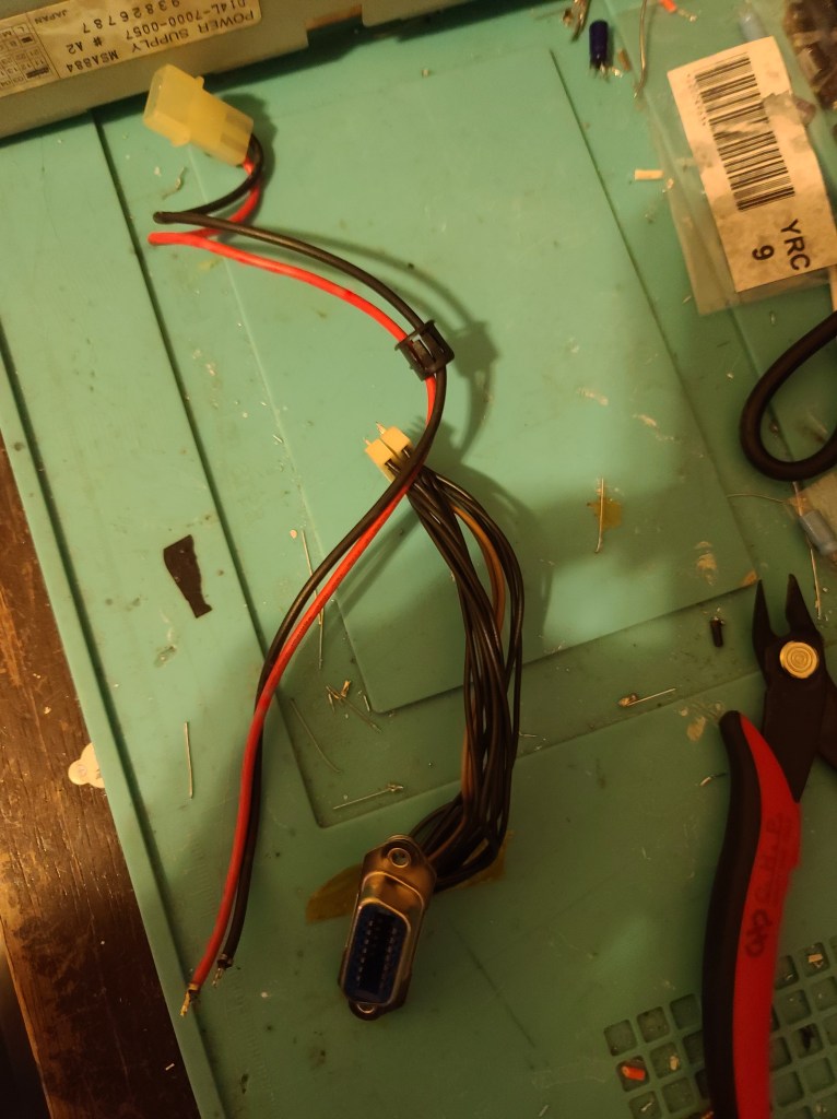 So Start by disassembling the power supply card. There are a few screws like everything. Notice the D-Sub connector with approximately 14 wires coming out of it. This is your interface to the motherboard. Safely desolder the wiring harness from the PSU card and the Fan wire. The two fan wires might be in a plastic casing on the metal PSU shield. Work around and cut it out.