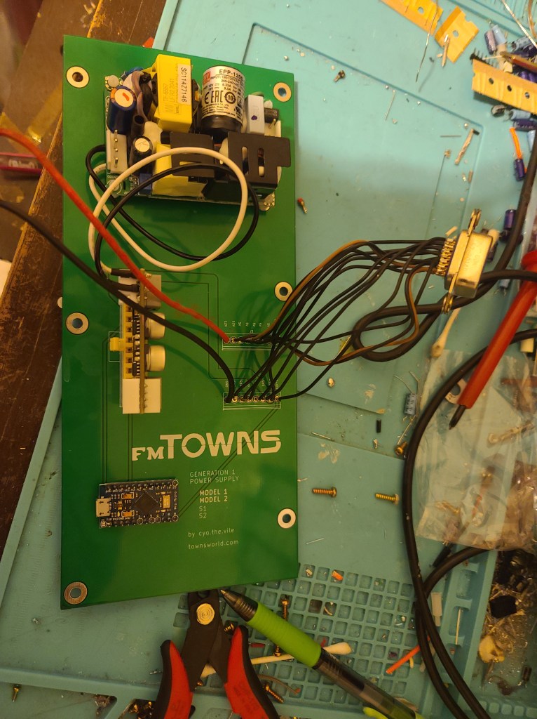 The Tower models seem to use a lot of interchangeable components such as floppy drives, power supplies for certain models and specifically CD ROM sled assemblies. However the very first FM Towns towers have used a totally different power supply. Luckily I bought a Model 2 and have made a bulletproof solution.