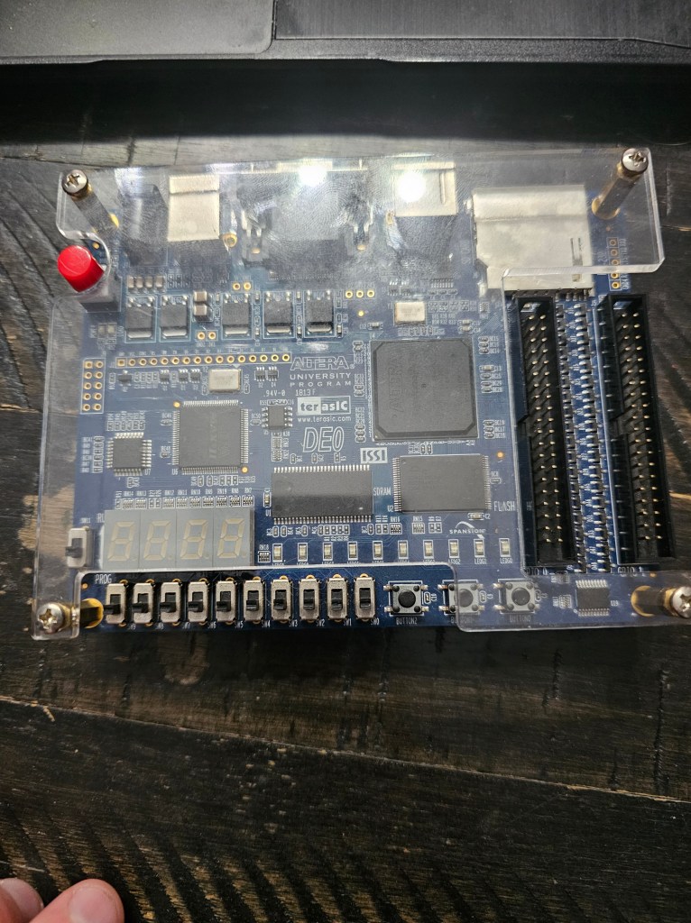The DE0 by Terasic contains a Cyclone III with 15K LEs, tons of GPIO on the right side, and most notably a 4-bit resistor DAC VGA network. So 4 wires per color as the video already is from the NGPC. Once the design is verified on this board at 640×480, I can port this over to an FPGA by Efinix. Currently, the 50mhz clock signal can’t hit the 148.5Mhz pixel clock required for a 1080p video framework but I think with cascading PLL it could be achieved.