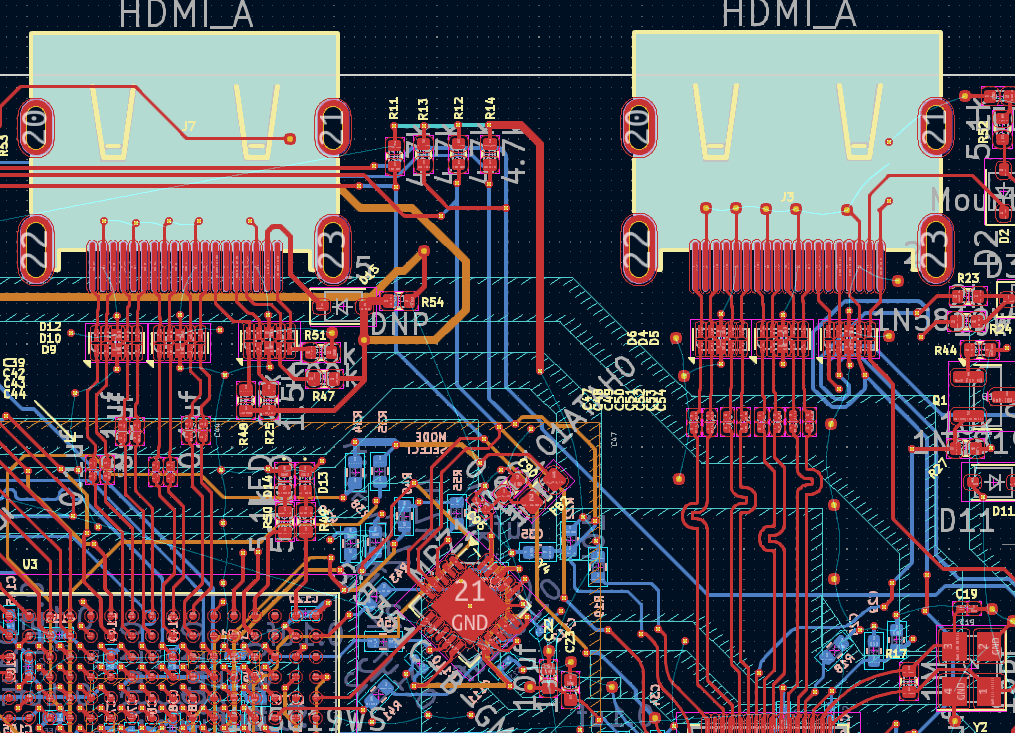 U5 is our HDMI transmitter that isn’t fully wired. This is version 2 of the board. Version 1 had improper footprint. An expensive mistake on my part.